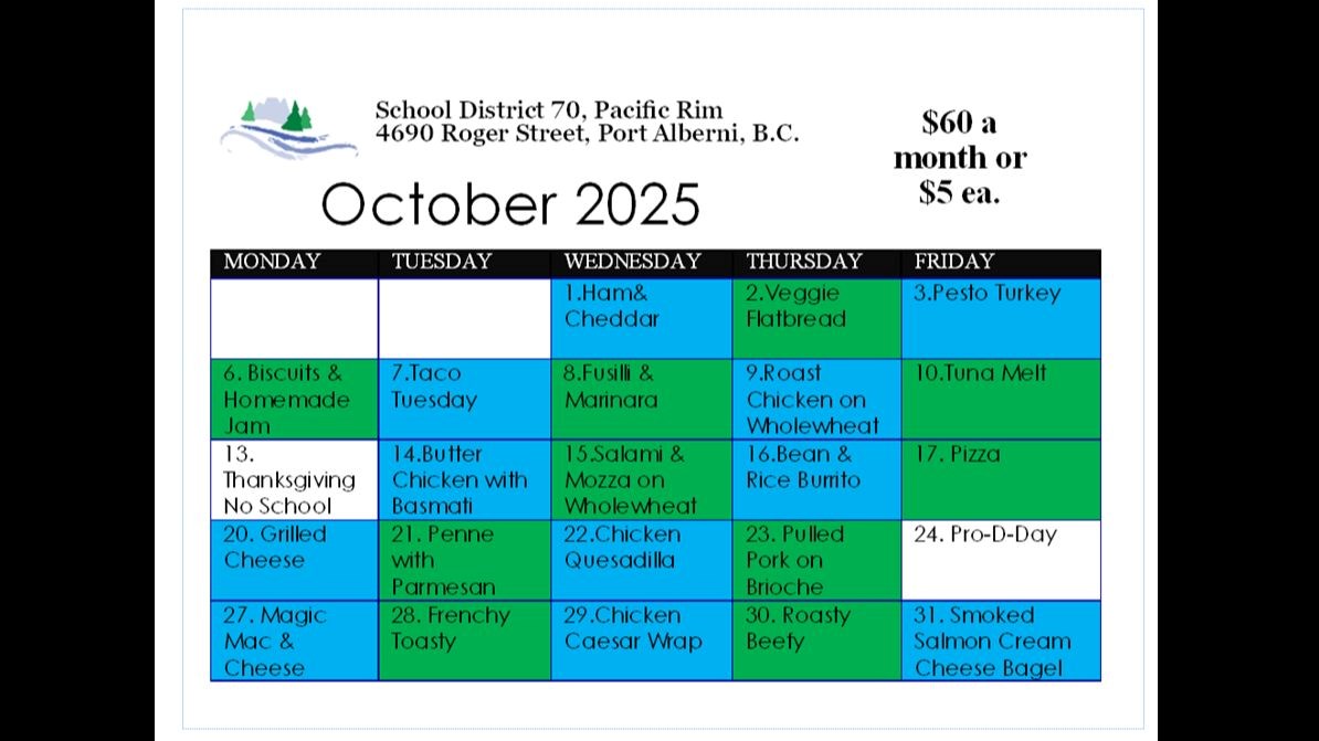 The Wickaninnish Community School lunch program is run and operated by our Parent Advisory Committee.  Chef Ron Weeks is busy everyday baking bread and sourcing ingredients for our snacks and daily lunch features.   Morning and lunch recess our students receive fresh fruit, veggies and homemade baked snacks.   Our program is sponsored by parent contributions monthly and many local generous supporters!!
